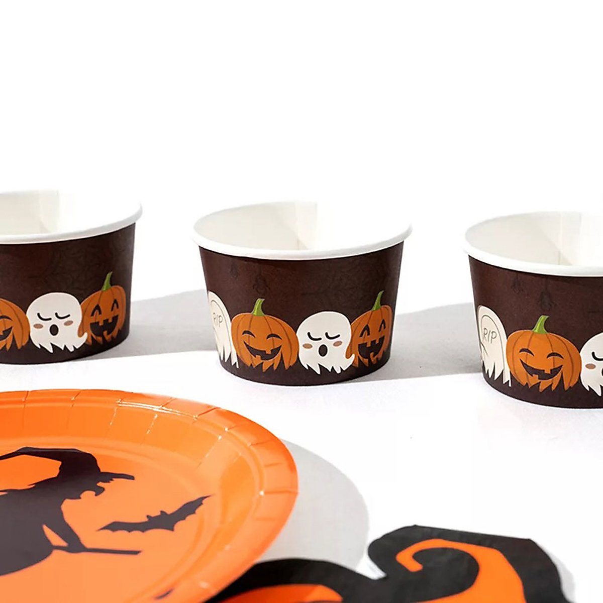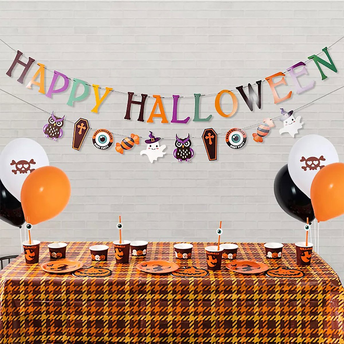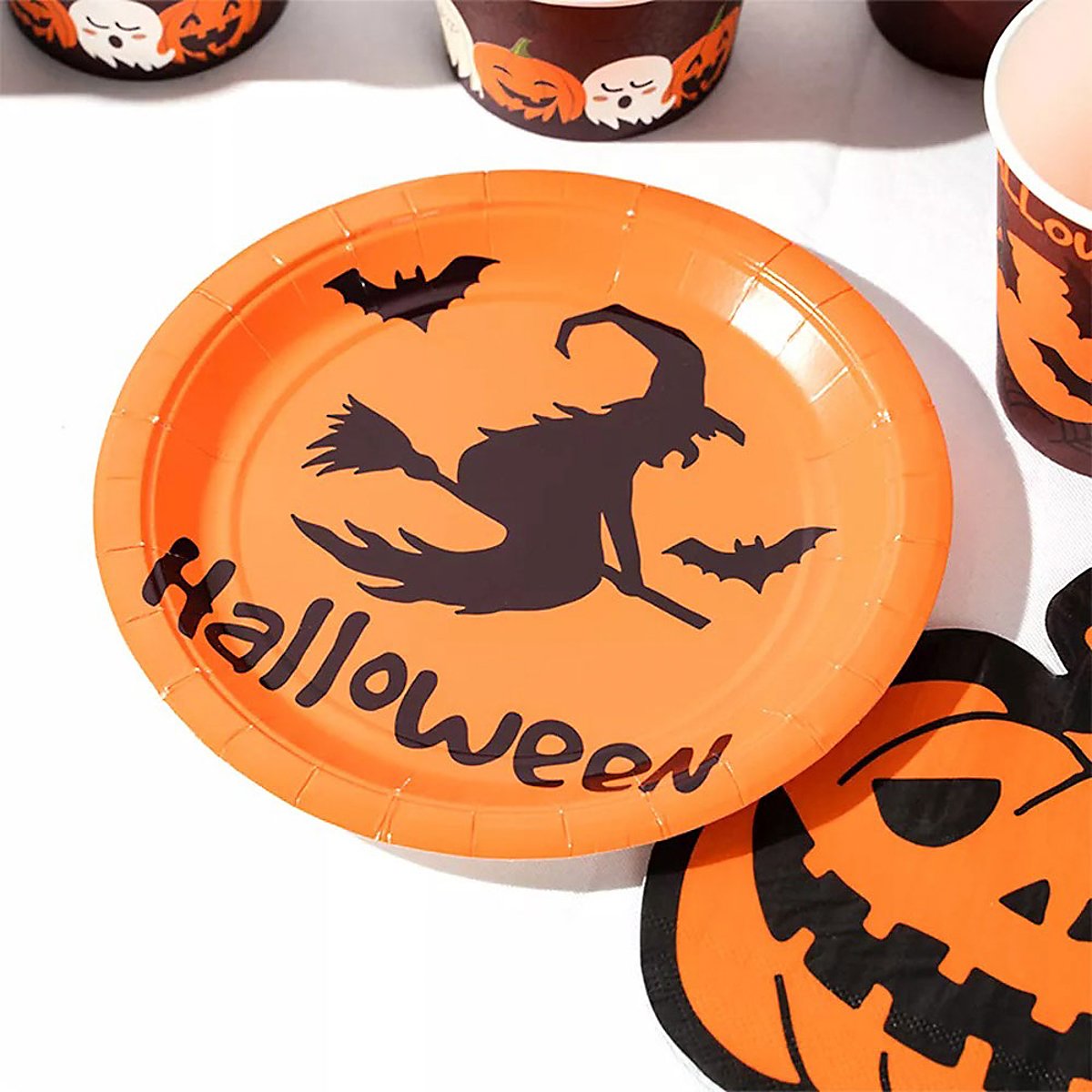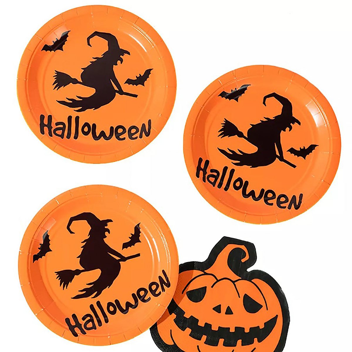 Umfangreiche Partydeko mit Kürbis- und Hexenmotiven, geignet für 6 Personen